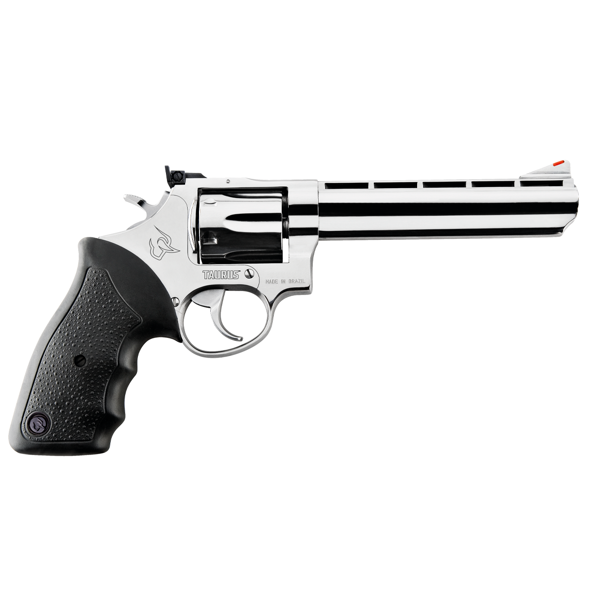 O Revólver Taurus 889 possui capacidade para 6 cartuchos, vértice de mira ajustável e opções de cano ventilado de 4" ou 6"